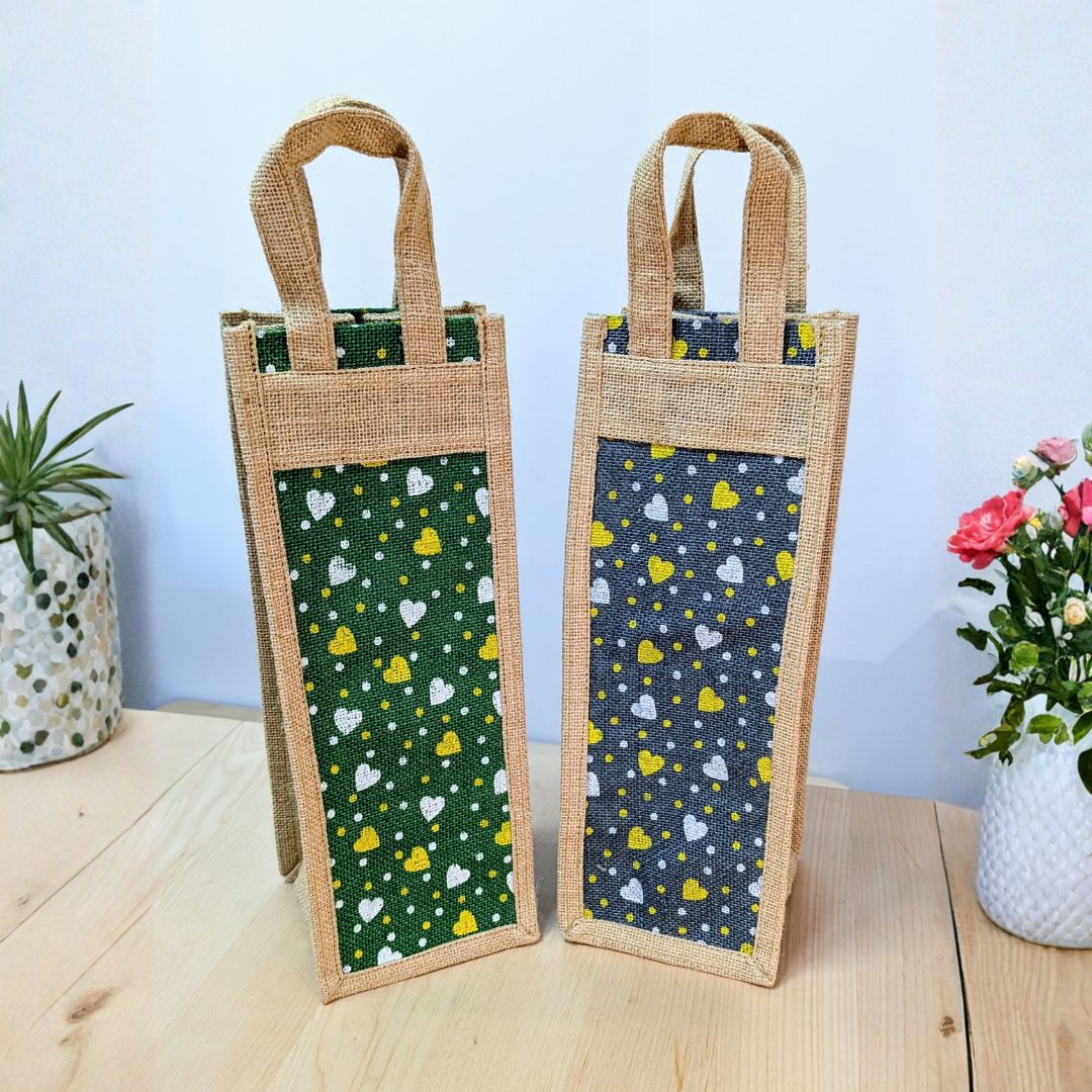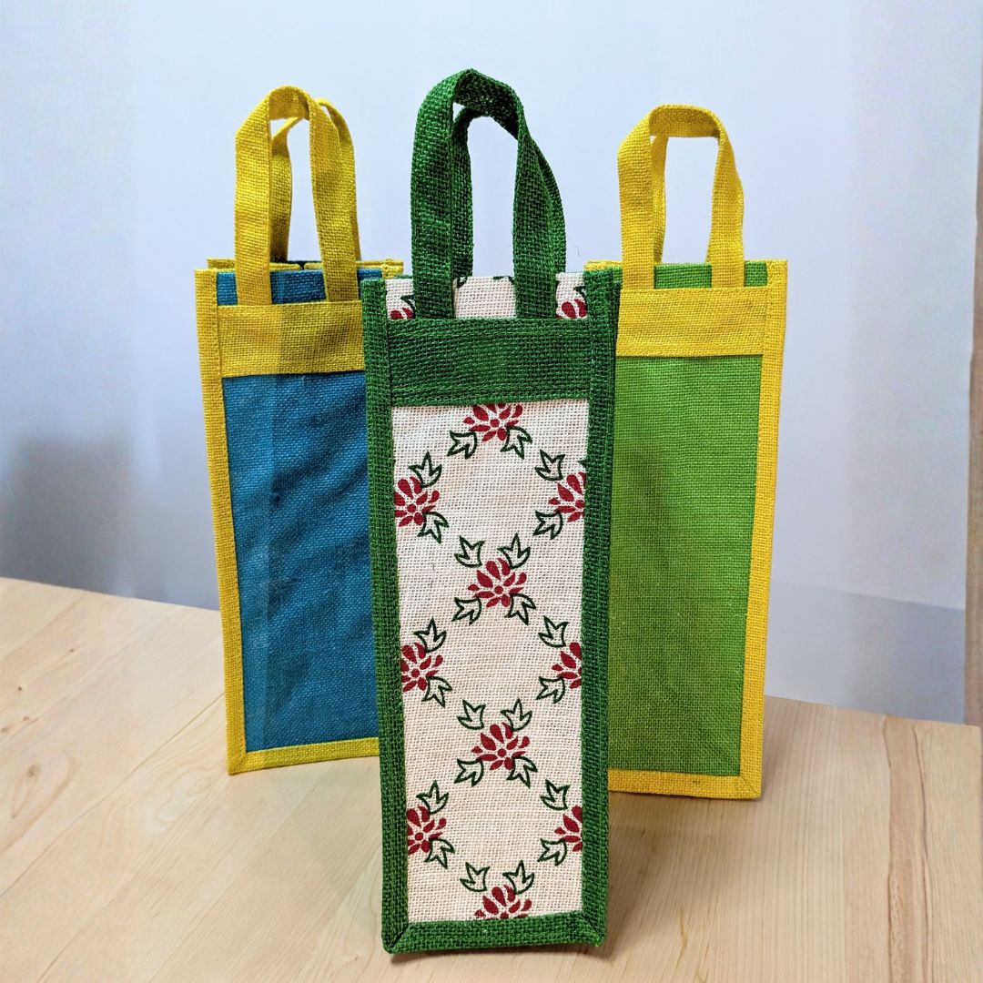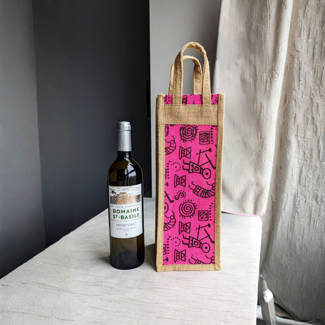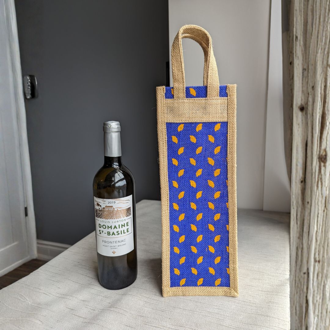 These beautiful wine bags feature colorful prints.